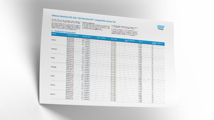 Watson-Marlow 530, 630, 730 EtherNet/IP™ compatible sensor list Quickstart guide Download PDF - 235.2kb